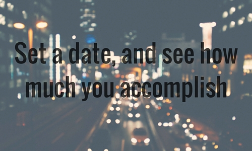 This same series of events happens whenever you set a date for something you want to do. When you set a date for something to get done, you will make it happen. It is just another added motivation factor that helps you get to where you want to be.
